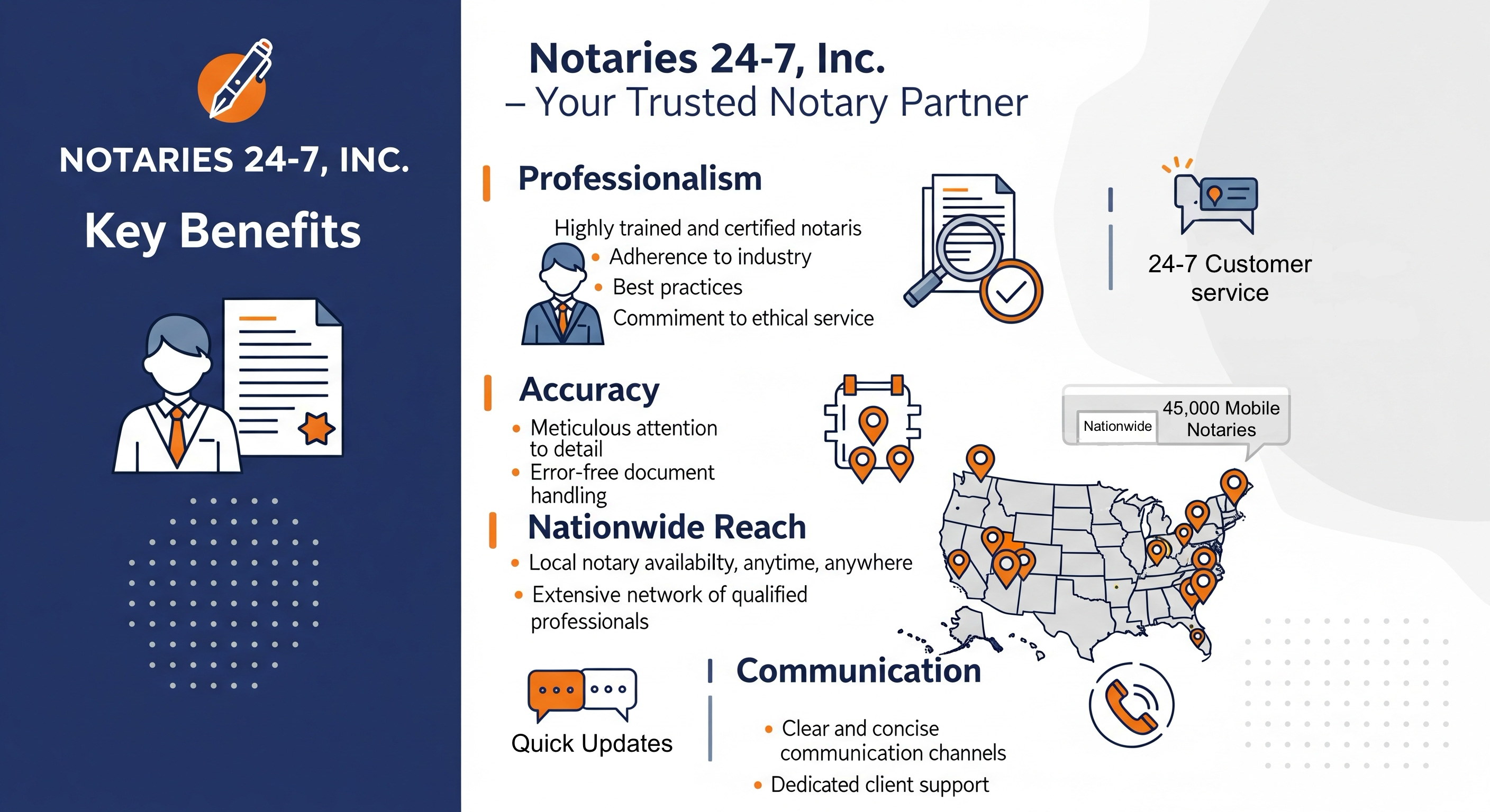 By partnering with Notaries 24-7, you ensure that your clients are met with: